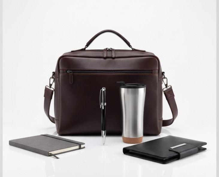 | La Colección Premium con Maletín de Piel Obscuro representa elegancia, profesionalismo y distinción en un solo conjunto. Diseñado para ejecutivos, empresarios y profesionales que valoran la calidad, este set combina materiales de lujo con una presentación impecable. El maletín de piel en tono oscuro aporta un estilo sobrio y atemporal, acompañado de accesorios ejecutivos funcionales y de alta gama. Ideal para regalos empresariales, incentivos corporativos o reconocimientos, con posibilidad de personalización con logotipo o nombre grabado. Incluye: Maletín de piel genuina en tono chocolate oscuro con correa ajustable y compartimentos internos. Carpeta ejecutiva de piel sintética con cierre magnético. Libreta profesional con cubierta rígida y acabado texturizado. Bolígrafo metálico de lujo con detalles cromados. Taza térmica de acero inoxidable con base de corcho natural y tapa antiderrames. |
